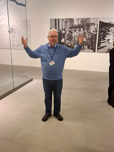 Im Museum wurden zudem Grundzüge jüdischer Religion und Tradition anschaulich erläutert: die Bedeutung der hebräischen Bibel (Tanach), der Tora als Kerntext sowie der mündlichen Überlieferung, die später im Talmud verschriftlicht wurde. Auch die Rolle des Schabbats als wöchentlicher Ruhe- und Feiertag, die Speisevorschriften (Kaschrut) und der Stellenwert von Erinnern und Gedenken in jüdischen Familien und Gemeinden kamen zur Sprache. Dr. Bartsch erläuterte daneben Traditionen und religiöses Leben der heutigen Gemeinde, deren Mittelpunkt seit 2006 das Shalom Europa mit seiner 1966–1970 erbauten Synagoge ist. In diesem Zusammenhang wurde auch die Architektur der Synagoge als Ausdruck religiöser Praxis beschrieben – etwa die zentrale Stellung des Lesepults (Bima) und die besondere Bedeutung des Raums für Gebet, Gemeinschaft und religiöse Rituale.
