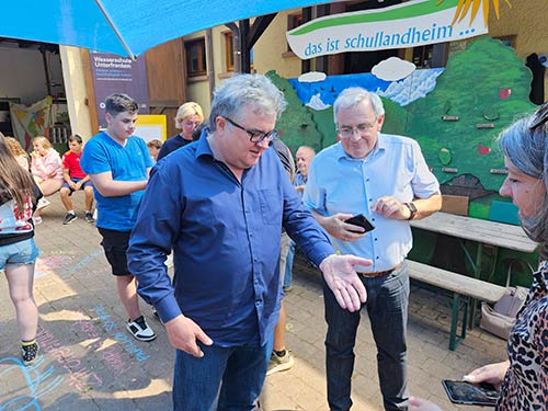 Im Gefolge der „Sommertour Europäische Partnerschaft des Bezirkstagspräsidenten“ lernte der Gerhard Müller, GRÜNER Bezirksrat und Vorsitzender der Kommission für Europäische Partnerschaften im Bezirk Unterfranken, das Schullandheim Hobbach kennen. Jugendliche aus Laufach (Lkr. Aschaffenburg), Sainte Eulalie (Frankreich) und Yepes (Spanien) verbrachten eine gemeinsame Woche in der zertifizierten Umweltstation mitten im Spessart. Ganz praktisch wurden ökologische Fragen der Wasserqualität, des Klimawandels, der Spessart-Fauna und der insektenfreudigen Flora untersucht und diskutiert.